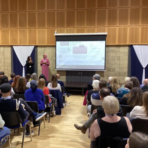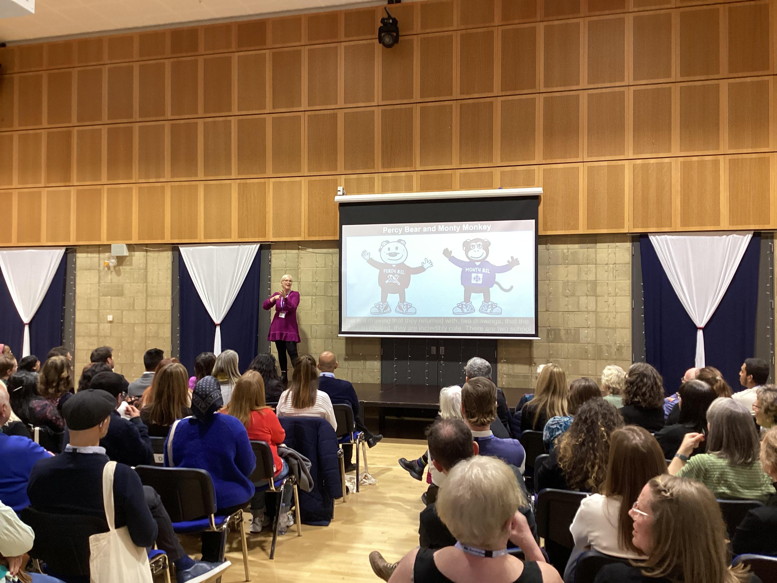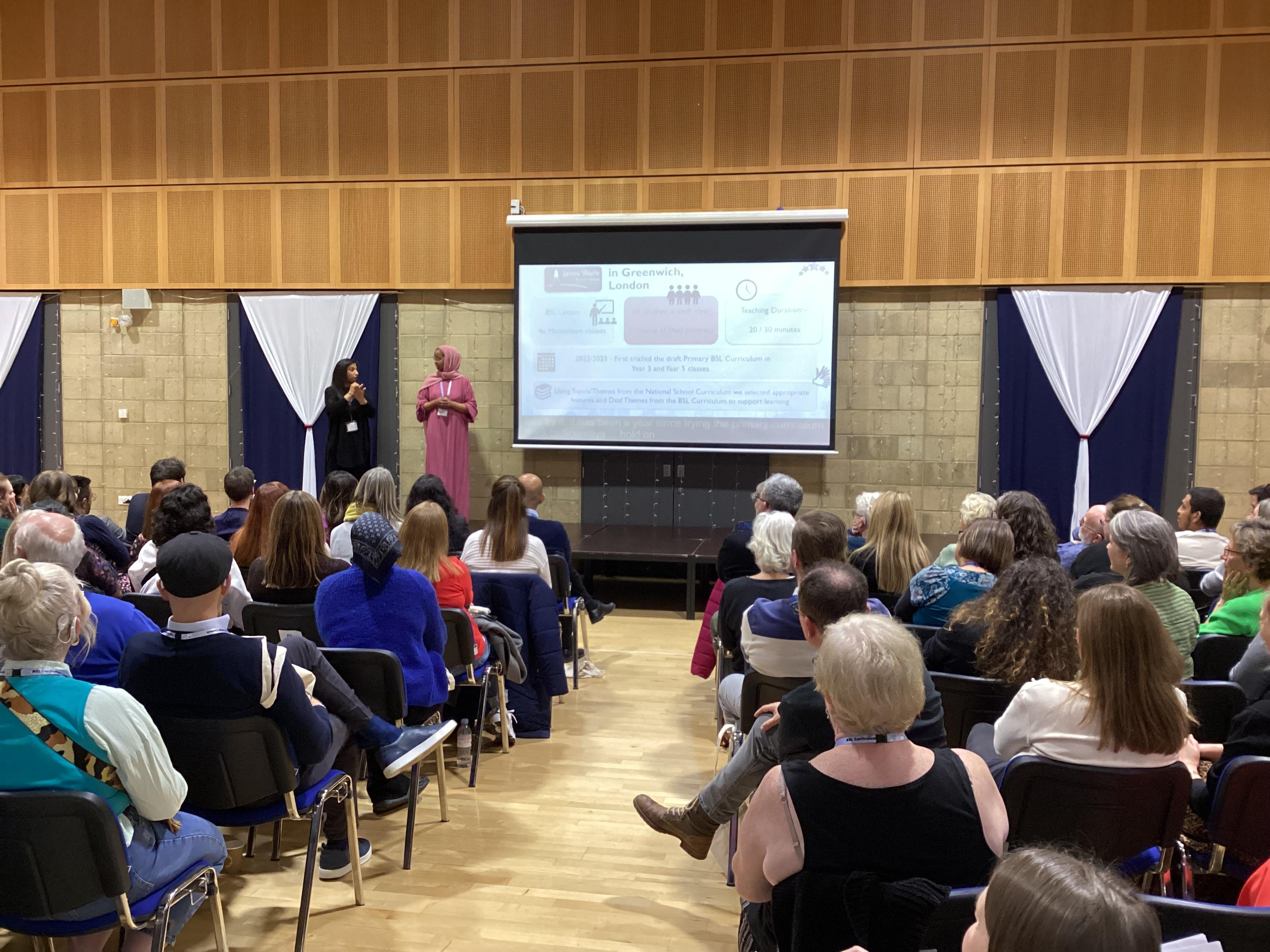 Presentations by: Stephen Mitchell, Headteacher and Kay Baxter, Deputy Headteacher, King's Cross Academy. "The Benefits of BSL at King's Cross Academy" Soemaya Elmi, TA and Trainee BSL teacher, James Wolfe Primary School with Centre for Deaf Children and Tina Dhunday, Deaf Instructor and BSL teacher, Royal Greenwich Sensory Service.